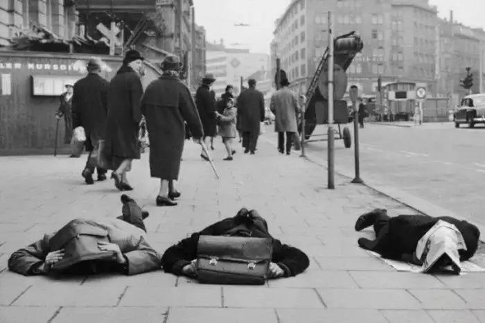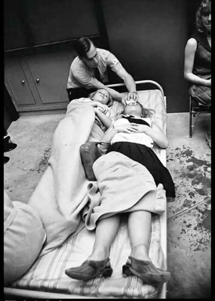 Активисты демонстрируют, как вести себя в случае ядерного удара. Гамбург. 1963 год.