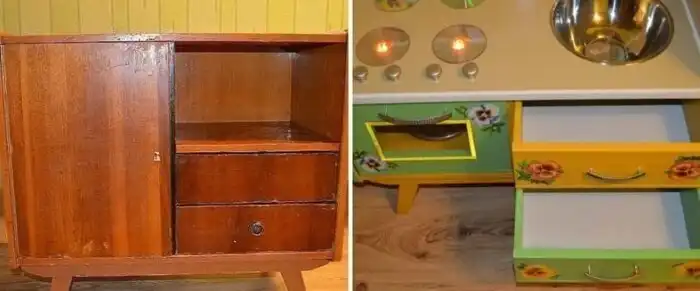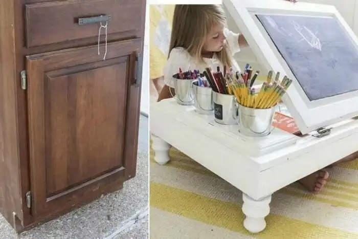Старая тумбочка превратилась в детский столик для творчества. Ребенок в восторге!