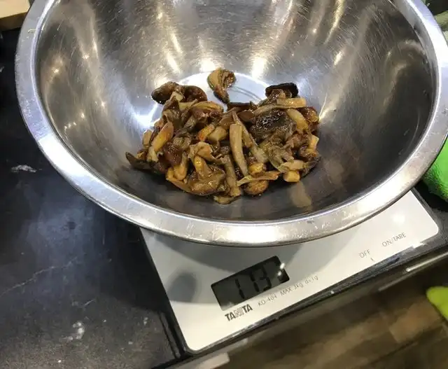 А вот и итог: 113 грамм грибов и 191 грамм воды...