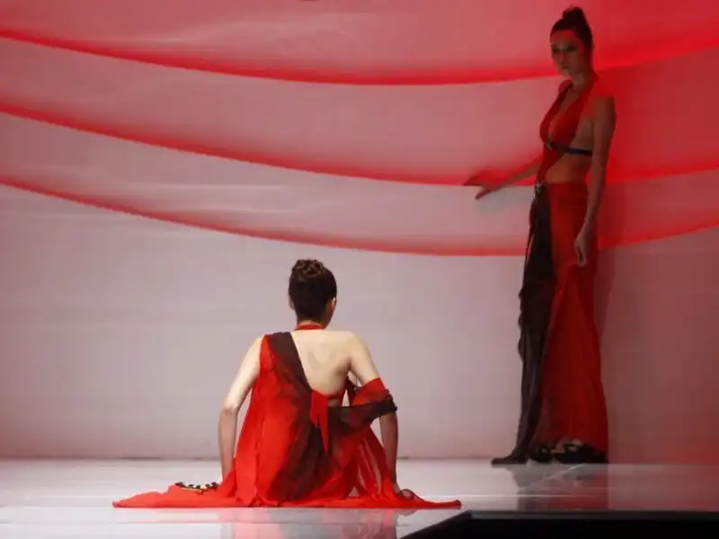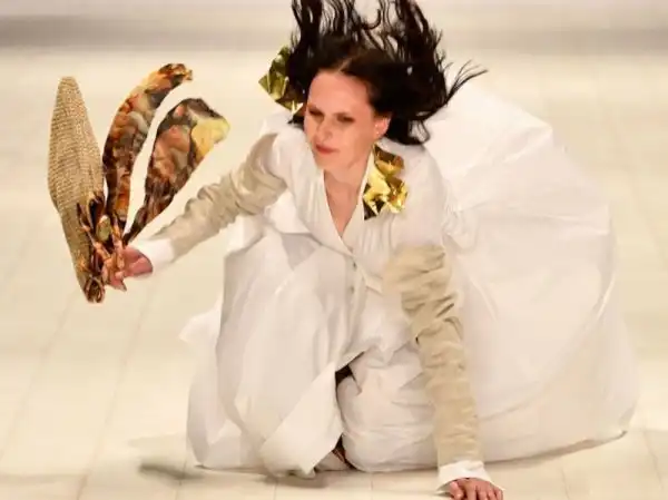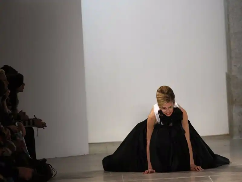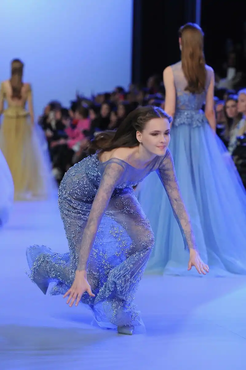 Фантазии модельеров нет предела, а потому они одевают девушек в экстравагантные наряды, в которых не то что ходить - стоять сложно. Потому неудивительно, что с завидной частотой модели исполняют на подиуме пируэты, схожие с акробатическими номерами в цирке.