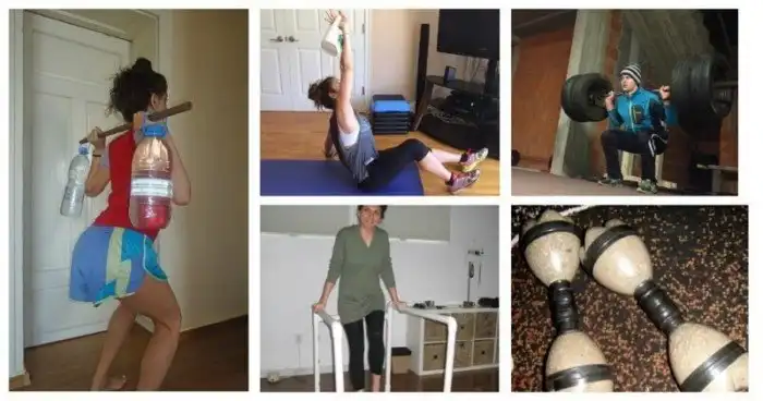 Гантели разных видов и размеров из разных материалов - все, что есть под рукой