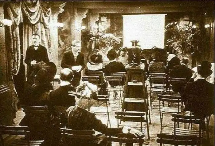 6. Первый публичный киносеанс Огюста и Луи Люмьеров в 1895 году в парижском «Гран-кафе» на Бульваре Капуцинок