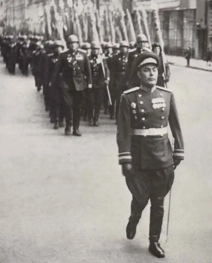 10. Советские и американские войска в немецкой деревне Грибо (Саксония) празднуют победу во Второй мировой войне. Фото: май 1945 года