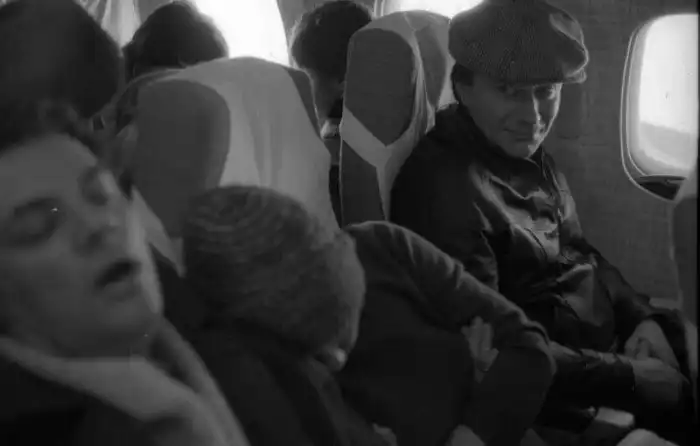 30. Андрей Миронов и Александр Ширвиндт летят во Львов на съемки фильма "Старики–разбойники", 1970 год