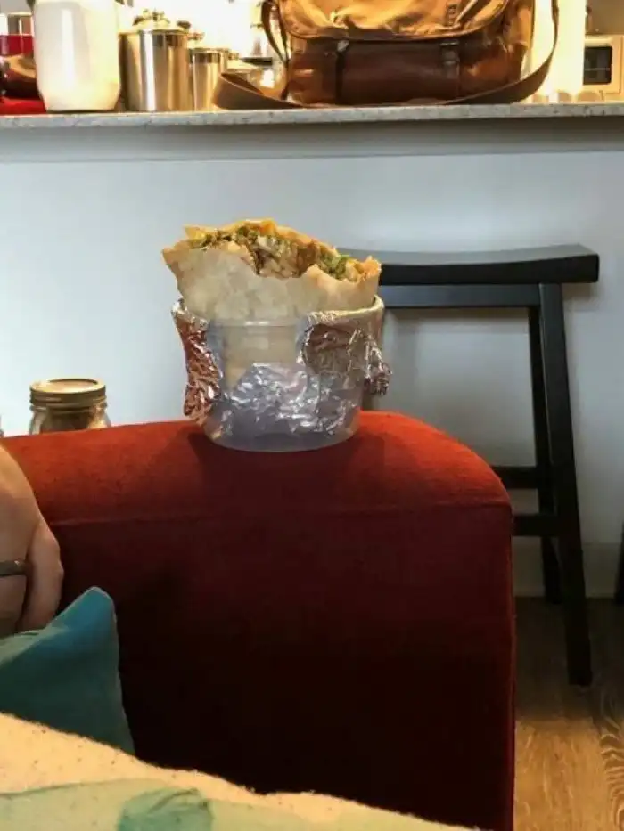 1. Боитесь, что сок из буррито или шаурмы протечет на диван? Используйте контейнер и фольгу: и мыть не надо контейнер, и мебель в безопасности останется