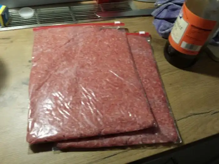 2. Если в морозилке мало места, заморозьте фарш в плоских пакетах