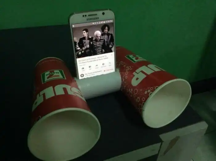 20. Дешевый динамик для смартфона из двух стаканчиков и втулки