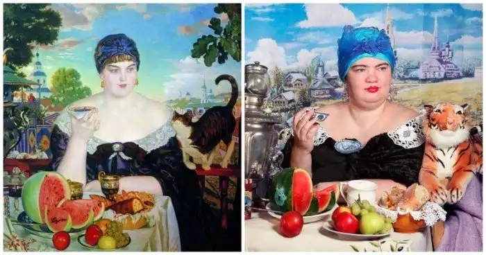 8. Кустодиев "Купчиха за чаем", 1918 год