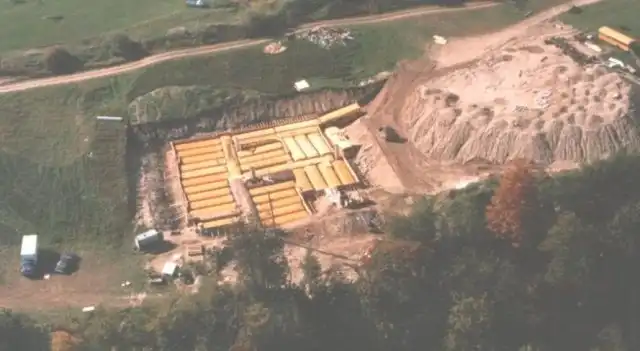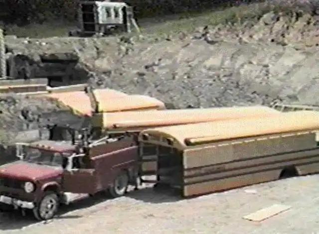 Он нанял тяжелую технику, выкопал огромный котлован и купил 42 старых школьных автобусов. Автобусы установили на дно ямы, а затем сверху покрыли их 4 метрами земли.