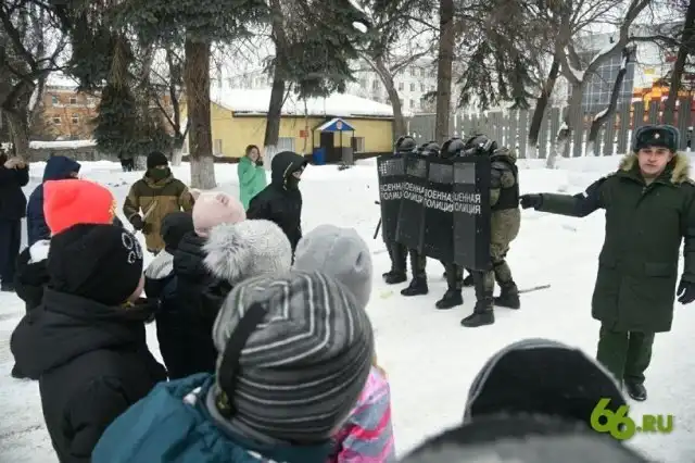 СМИ сообщают, что в военной комендатуре Екатеринбургского гарнизона прошло показательное мероприятие для юнармейцев. Военные дважды показали школьникам, как происходит разгон митинга. По легенде, четверо злоумышленников с бутылками с зажигательной смесью и палками устроили митинг, но в нужный момент на место происшествия прибыл автомобиль с сотрудниками военной полиции. После непродолжительного противостояния лидера митинга скрутили, а все остальные участники митинга просто разбежались. После такого представления детям показали помещения военного комиссариата, где они даже примеряли на себя военную форму.