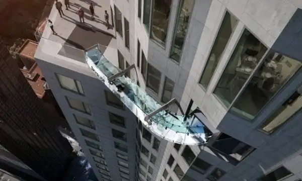 Он представляет собой прозрачную горку, установленную на самом высоком небоскребе мегаполиса, принадлежащем одному из банков США.