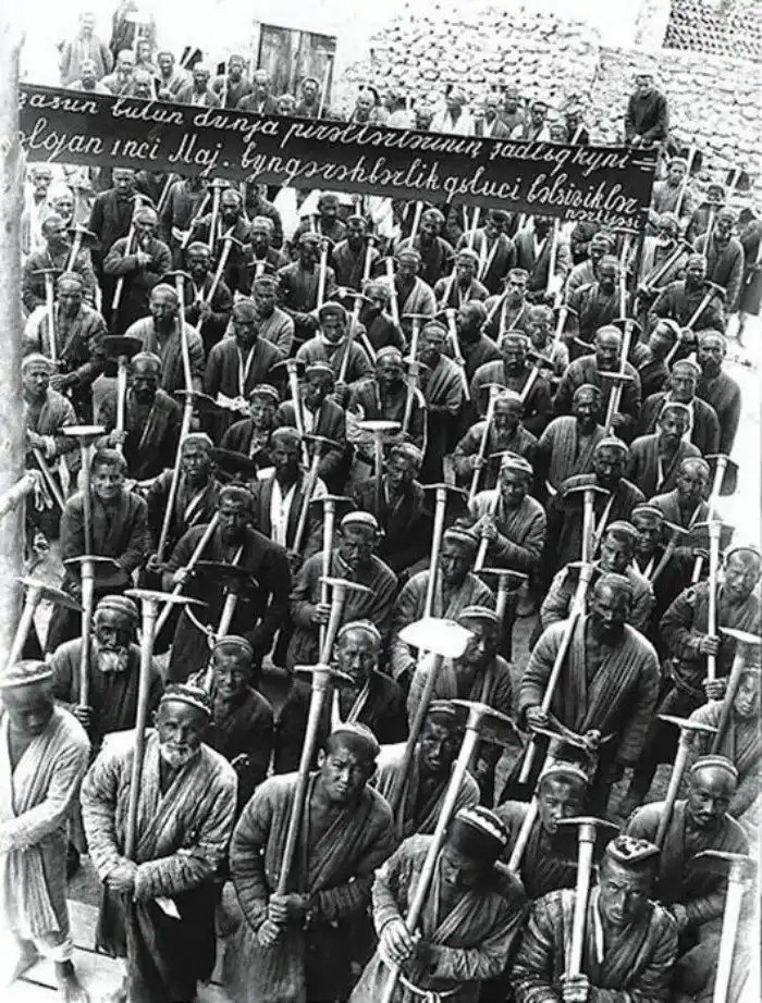 Криворожье. Еврейский колхоз-кибуц Бухариндорф. Первомайская демонстрация. 1929 г.