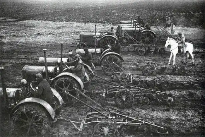 Испытание трактора в Сельскохозяйственной академии. Вспашка поля. Москва 1924 г.
