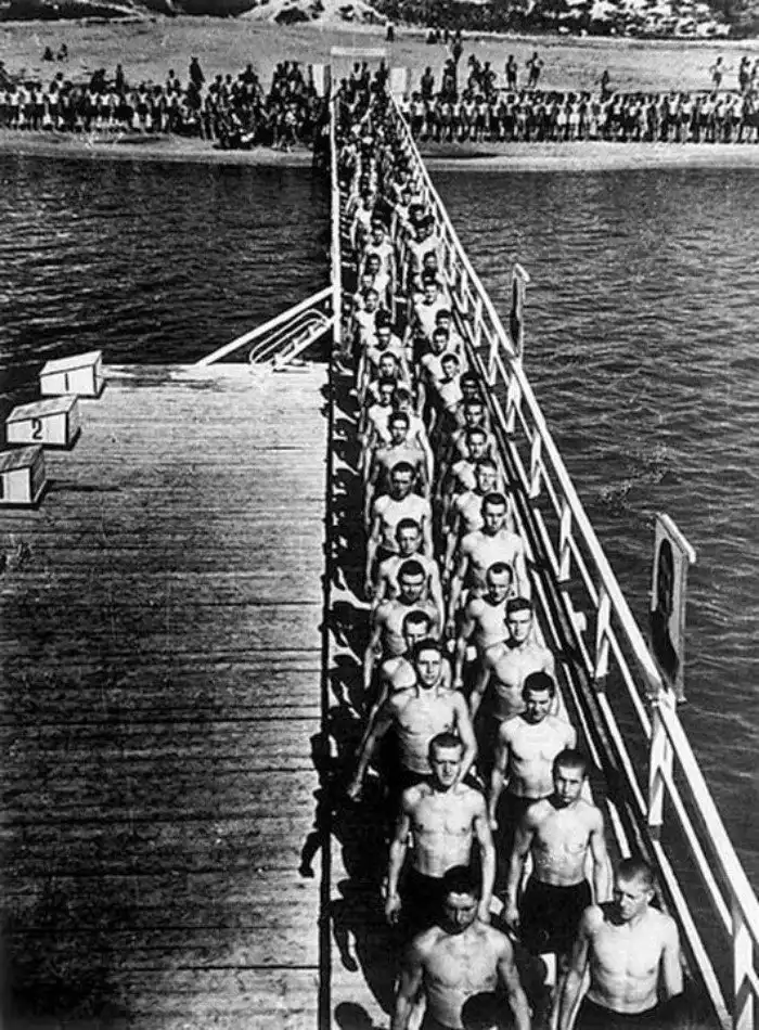 Крестьянский курорт в Ливадии. Утренняя зарядка, 1926 г.