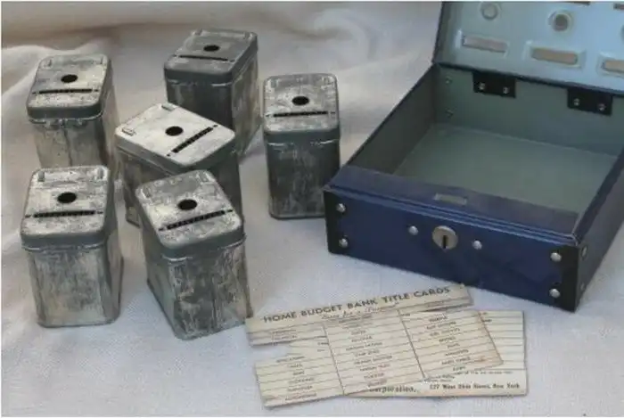 Каждое отверстие подписывается название цели, а затем туда бросают монетки или купюры