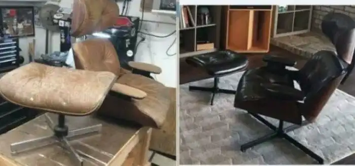 Реставрация кожаной куртки, которая немного истрепалась от езды (слева — до, справа — после)