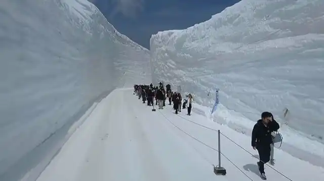 На экскурсионном маршруте между Тояма и Нагано можно увидеть огромные стены из снега, высота которых достигает 15-20 метров.