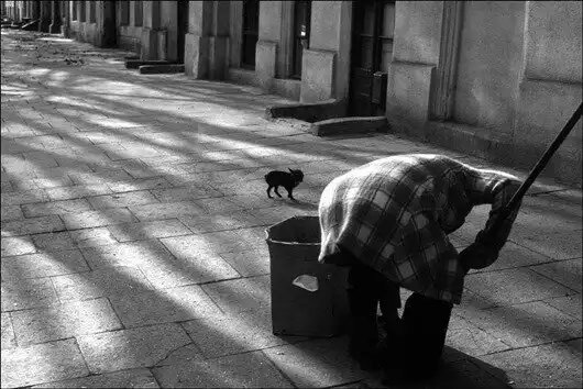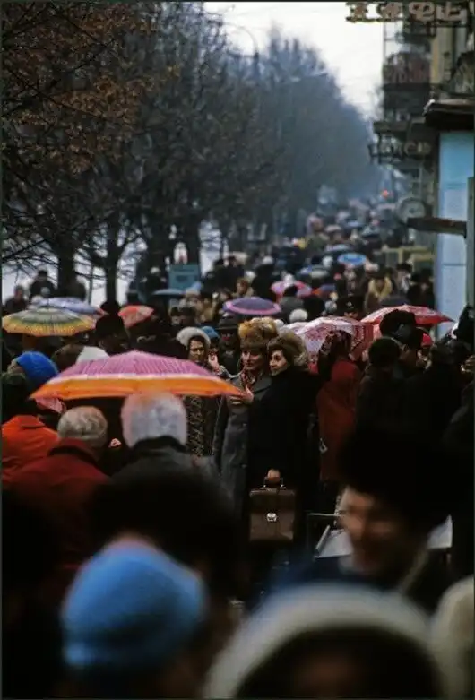 Женщина убирает улицу. 1979 год.