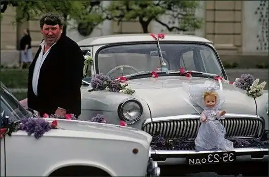 Водитель ждет молодоженов из ЗАГСА.
