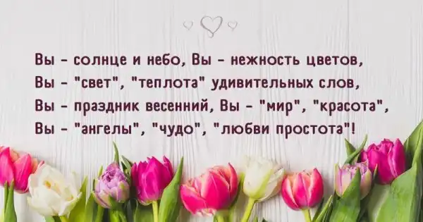 Короткие поздравляшки для прекрасных и солнечных! Всего самого-самого и дарите прекрасной половине человечества красивые стихи. А мы в этом поможем!