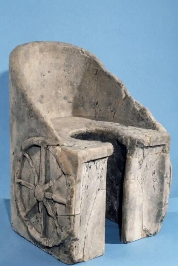Римский унитаз, вырезанный из мрамора в виде колесницы, Италия, 211-224 н.э.