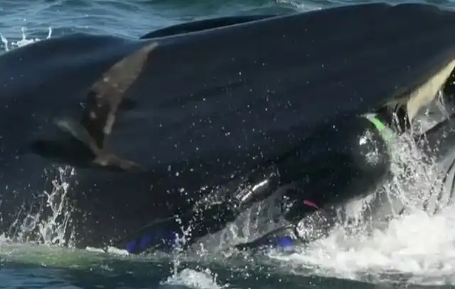 В ЮАР дайвера, который занимался подводной съемкой различной живности, "перекусил" кит. К счастью, когда мужчина оказался в пасти у кита, тот почувствовал неладное, и "выплюнул" хомо сапиенса.