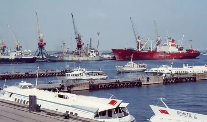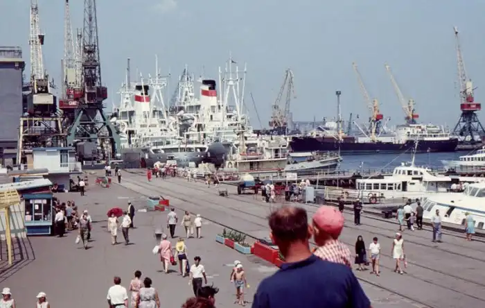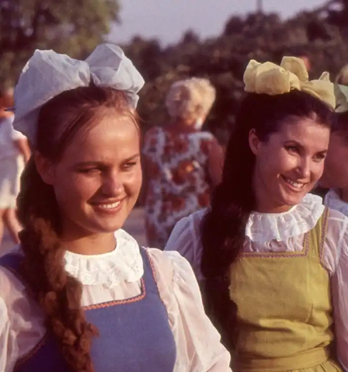 Тирасполь. Два участника молдавского фольклорного ансамбля «Дружба» беседуют с иностранными журналистами