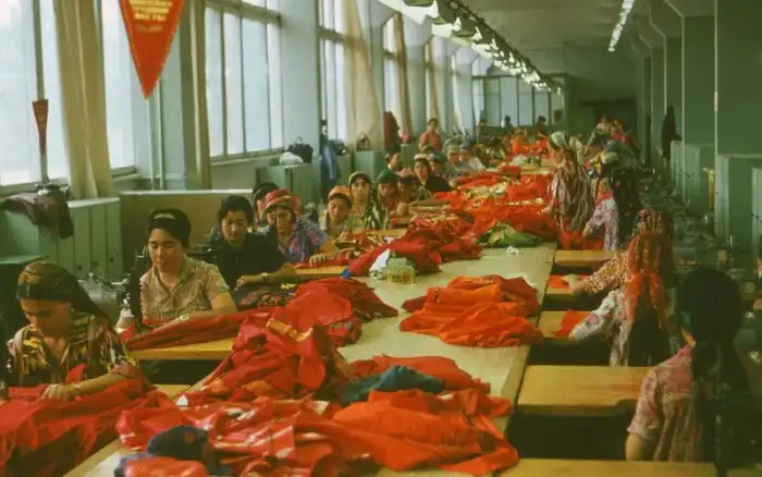 Самарканд. Шелковые ткани используются на Самаркандской шелковой фабрике для изготовления праздничной одежды для женщин