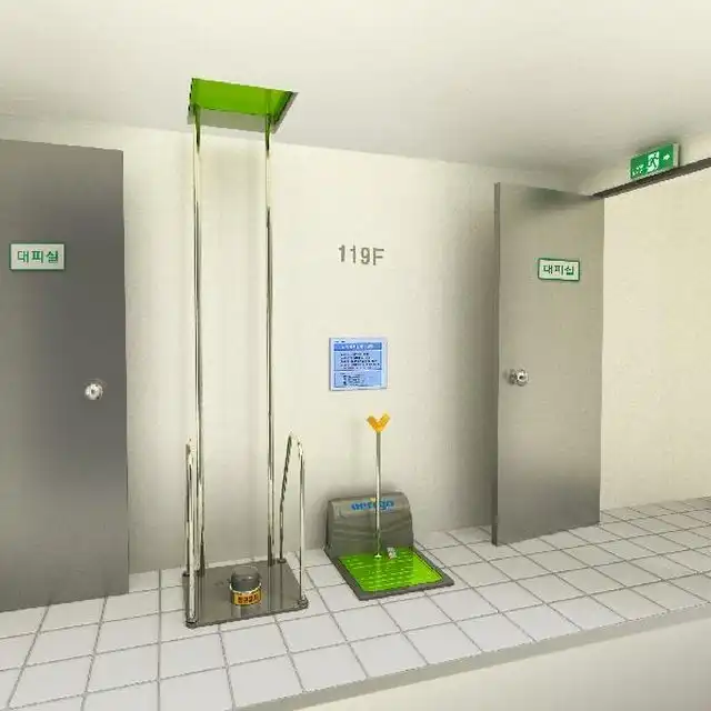 Система не занимает много места и состоит из специальных платформ с площадью в 60 квадратных сантиметров. Когда человек становится на платформу и отпускает специальный тормоз, платформа спускает его на один этаж вниз, затем он ступает на другую платформу и продолжает дальнейший спуск. Как только пассажир сходит с платформы - она самостоятельно поднимается на этаж выше для эвакуации следующего человека.