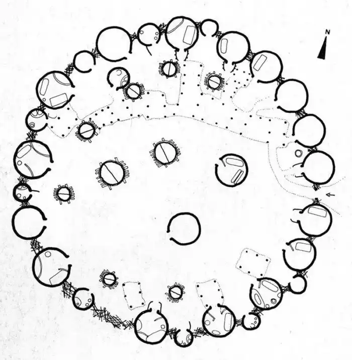Не все хижины имеют одинаковый размер - большие хижины использовались для домашнего скота. Место между хижинами имело определенные зональные цели, такие как зона для крупного рогатого скота, игровая зона и зона для семейных советов.