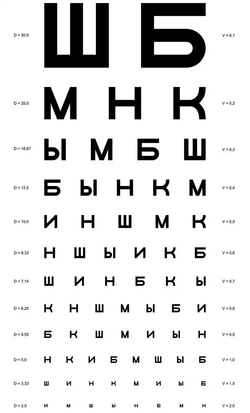 Самая распространённая на территории бывшего СССР таблица, применяемая для проверки остроты зрения. Таблица была разработана в 1925 году.
