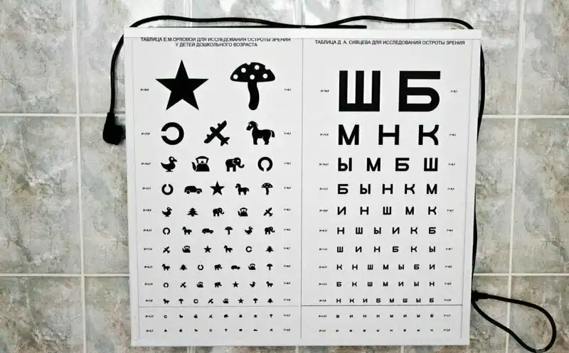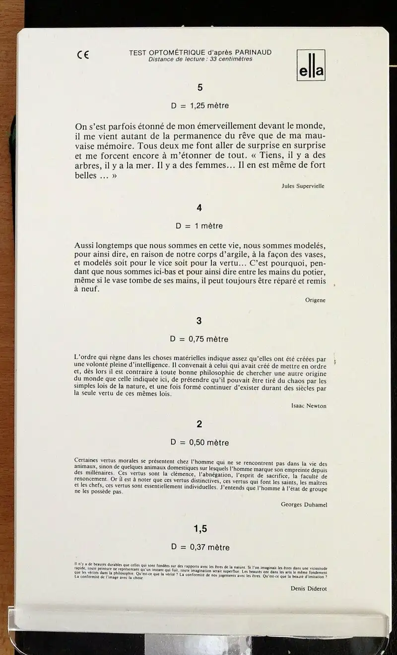 Французский офтальмолог в таблице проверки остроты зрения зашифровал своё имя и фамилию (Ferdinand Monoyer). Во Франции также используется т.н. доска Parinaud, представляющая из себя текст, который следует читать с расстояния 33 см.