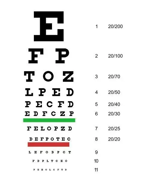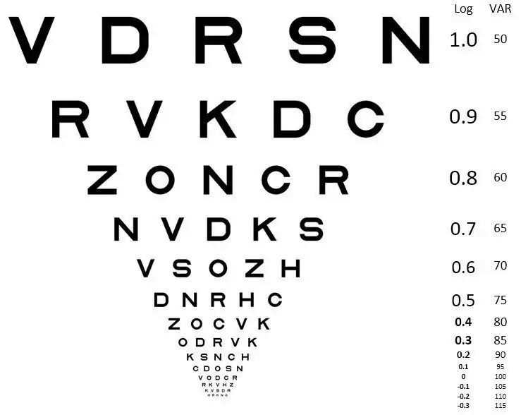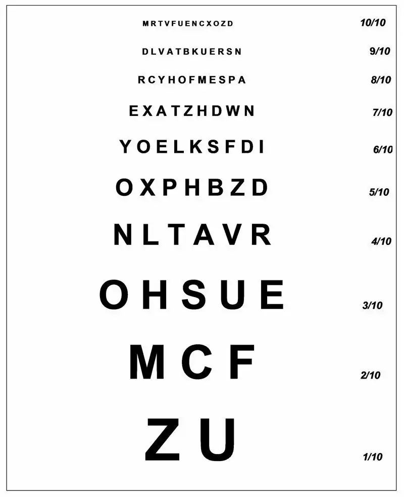 Основная таблица для проверки зрения в Британии и многих странах, использующих латинский алфавит.