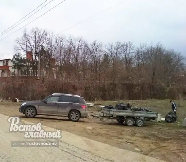 Дамба на СЖМ в Ростове возле старого кафе. Мужчина с двумя парнями (скорее всего сыновьями) приехал на мерседесе и расчистил поляну от мусора - бутылок, пакетов и т.п. Набрался целый прицеп. Потрудились и полностью очистили поляну. Благородные люди, спасибо им...