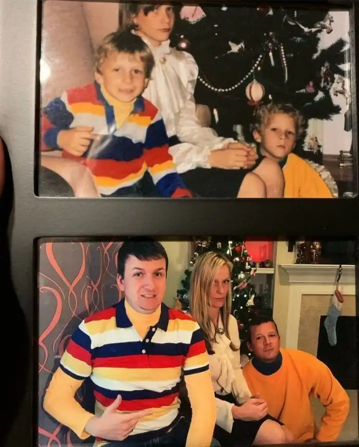 7. Просмотр семейного архива сподвигнул братьев и сестру воссоздать детское фото