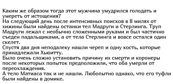 Случай, произошедший в 1978 году с друзьями из города Юба-Сити, Калифорния, неоднократно сравнивали с Перевалом Дятлова, когда в 1959 году при загадочных обстоятельствах погибли 9 лыжников. Пятеро близких друзей Гэри Дейл Матиас, Джек Мадруга, Джеки Хьюитт, Теодор Вейхер и Уильям Стерлинг встретились для того, чтобы посмотреть игру в баскетбол, и это был последний раз, когда их видели живыми.