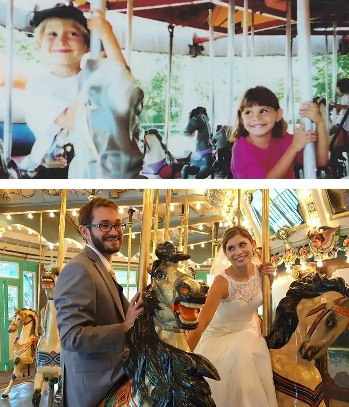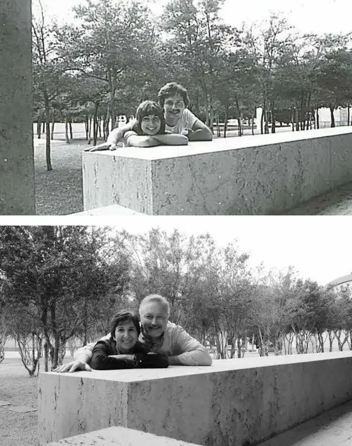 10. Мои родители воссоздали семейное фото 32-летней давности. Они всё ещё влюблены