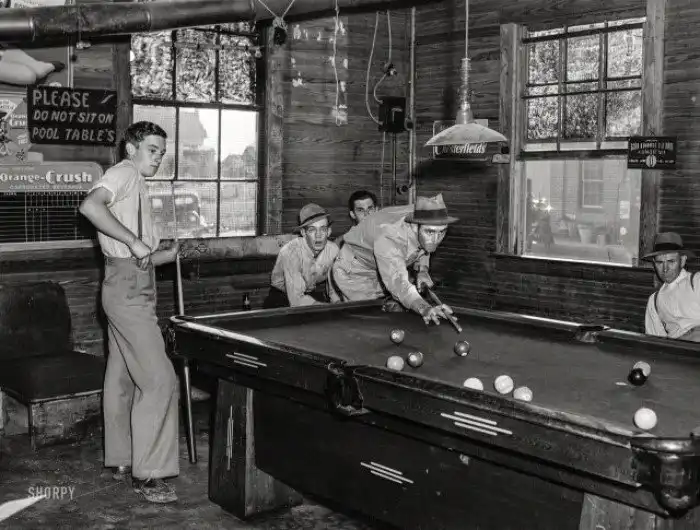 Бильярдный стол в сельском магазине Стэма, округ Гранвиль, Северная Каролина, май 1940 года