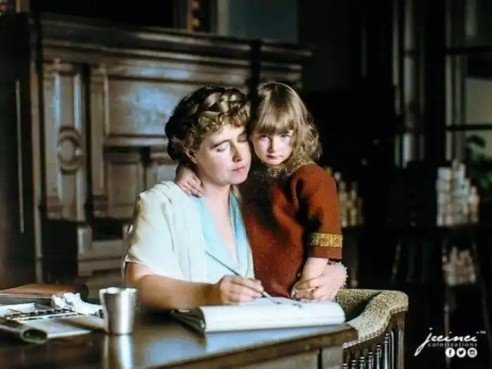 Королева Румынии Мария и ее дочь принцесса Илеана в замке Пелеш, 1914