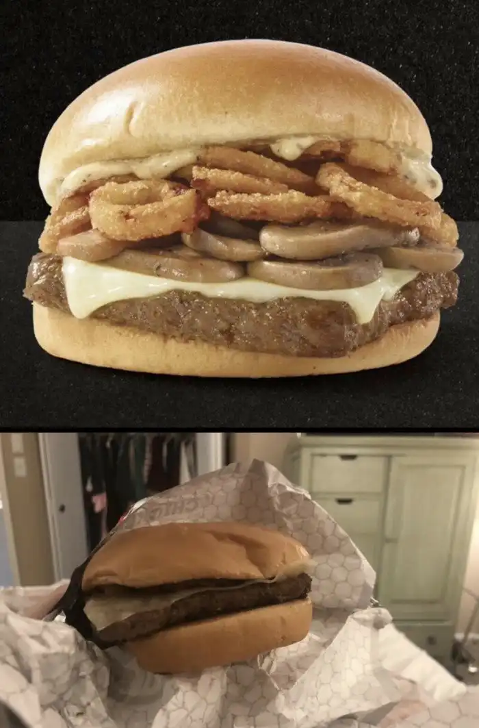 "Когда я купил это, я ожидал увидеть нормальный гамбургер, а в результате получил булку, внутри которой почти ничего не было!"