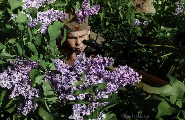 Если говорить о выборе исторических эпох для раскрашивания, то Ольга отдает предпочтение двум мировым войнам, России начала XX века и Голливуду 1950-х. Здесь представлены 25 её работ, посвящённых советским солдатам Великой Отечественной Войны.