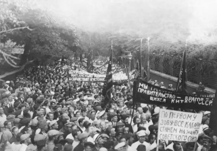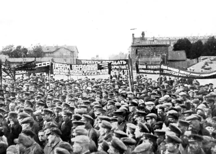 24. Участники демонстрации во время празднования 12-й годовщины революции