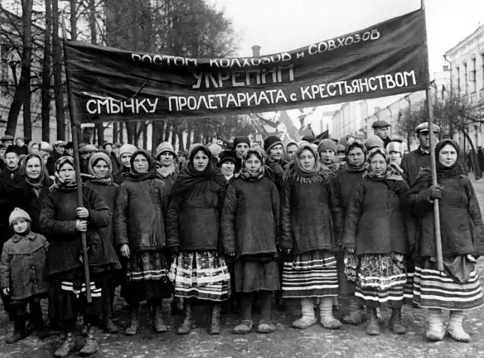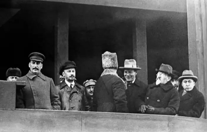 22. Празднование 12-й годовщины революции. Иосиф Сталин, Николай Бухарин и другие советские государственные деятели на трибуне