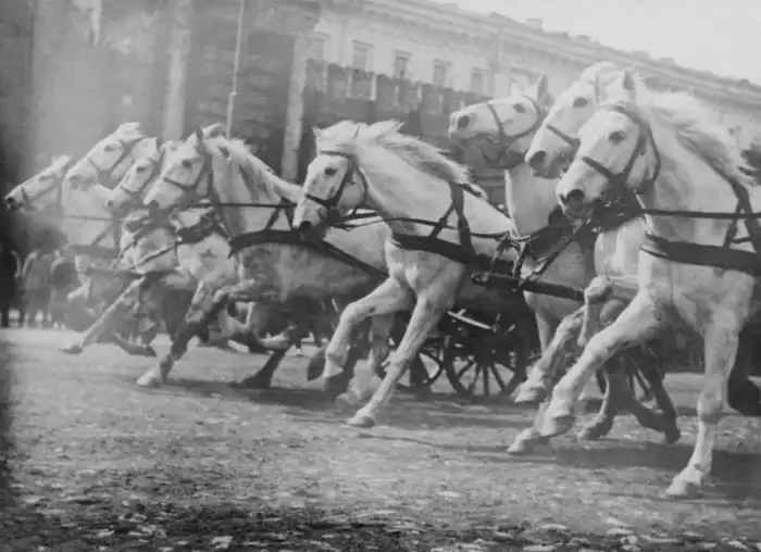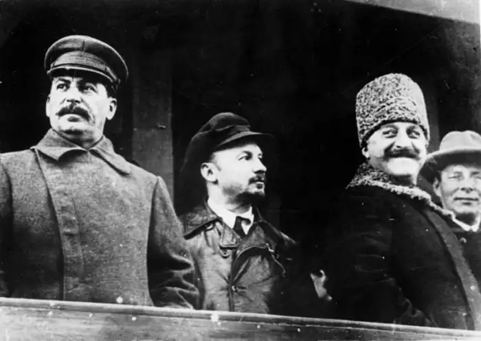 23. Празднование 12-й годовщины революции. Иосиф Сталин, Климент Ворошилов, Сергей Каменев и Николай Бухарин. 7 ноября