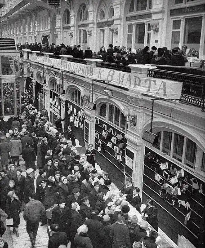 "Я пришла в ГУМ в октябре 1953 года, после смерти Сталина. При нем ГУМ был закрыт – ведь здание выходит на Красную площадь, и Сталин считал, что отсюда может быть совершено покушение. Сам магазин открылся только в декабре 1953 года – до этого там шел ремонт и завозили товары и оборудование.
