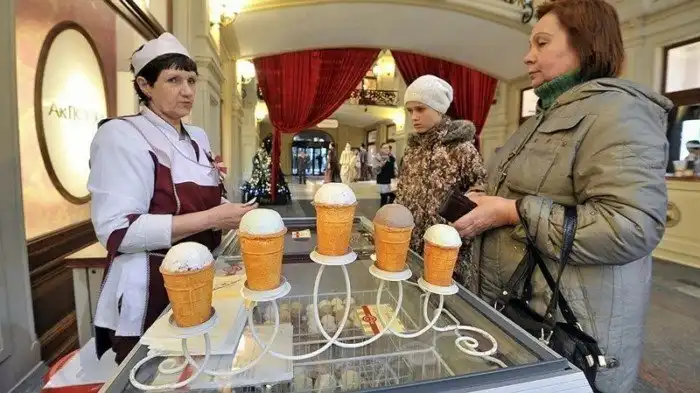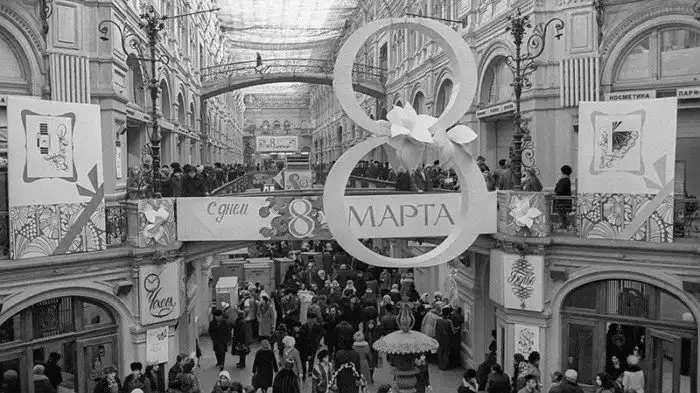 Адрес ГУМа – Красная площадь, дом 3 – знал каждый советский гражданин. Витрины были оформлены со вкусом – если люди шли мимо, они останавливались и разглядывали их. В то время в ГУМе можно было купить все – от значков с советской символикой до соболиных манто. Самые дорогие вещи покупали шахтеры из Донбасса или крепкие мужчины с Севера – они в те времена многое могли себе позволить.