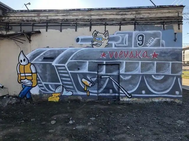 У станции МЦК "Ростокино" появилось очередное граффити, которое получило название "Воевака". Но на этот раз война между художниками и коммунальщиками получила новый поворот. Они не стали закрашивать весь рисунок.