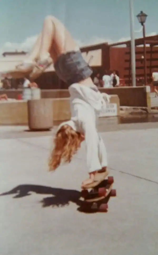 «Моя мама выполняет крутой трюк - делает стойку на руках на двух скейтбордах»