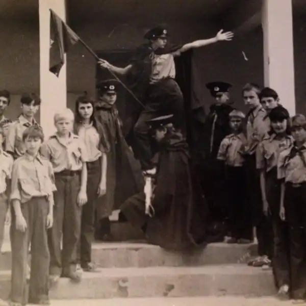 «Фото взято из маминого альбома. Самая центральная фигура с флагом - это она»