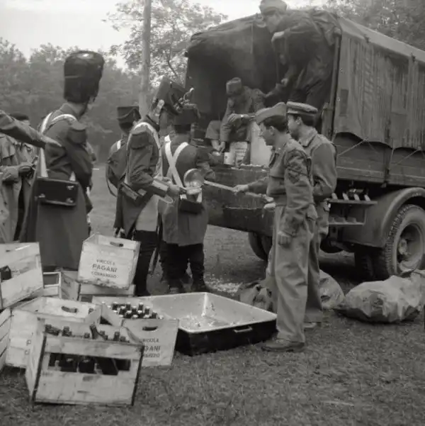 Раздача вина во время съемок фильма «Война и мир» Кинга Видора. 1955